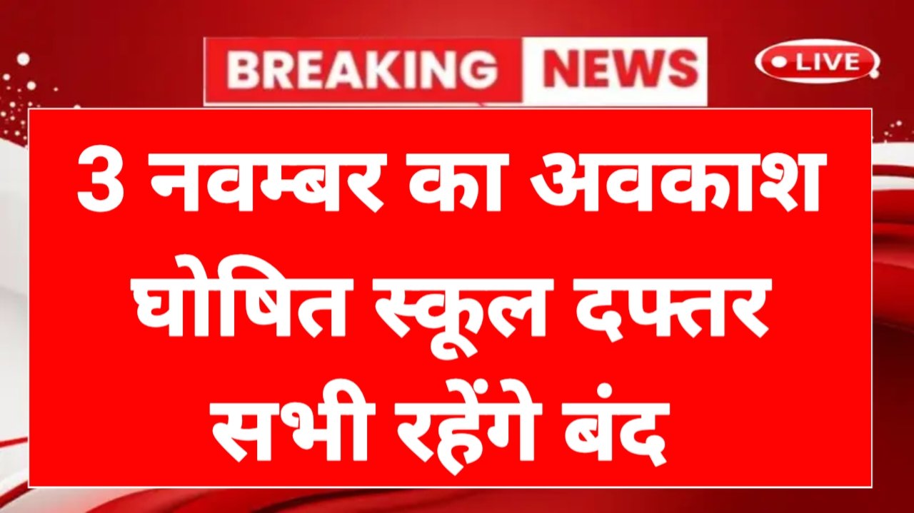 3 नवम्बर का अवकाश घोषित, पूरी तरह बंद रहेंगे स्कूल-ऑफिस Holiday On 3 November